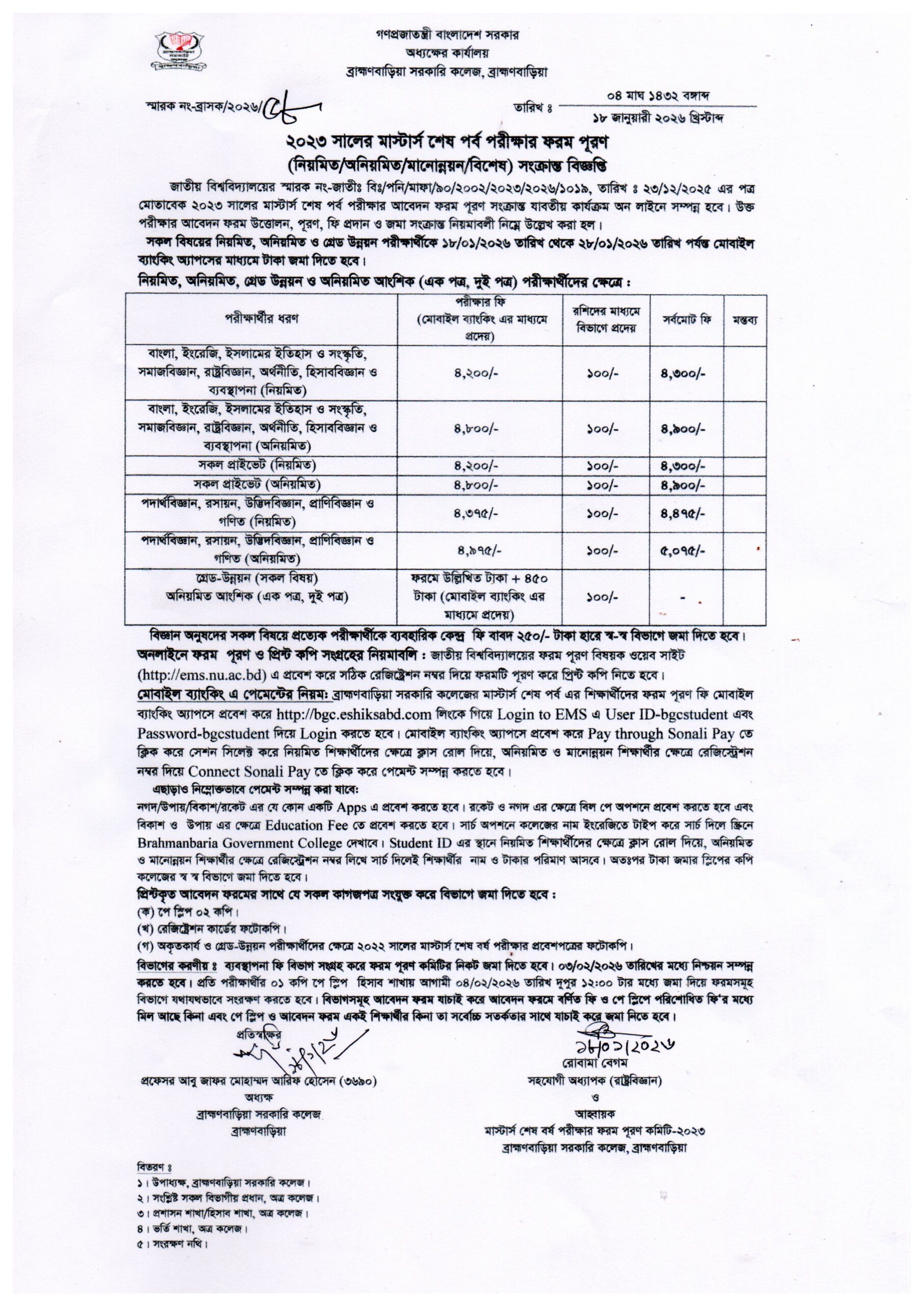 | ২০২৩ সালের মাস্টার্স শেষ পর্বের ফরম পূরণ সংক্রান্ত বিজ্ঞপ্তি | ১৮-০১-২০২৬ | ডাউনলোড |