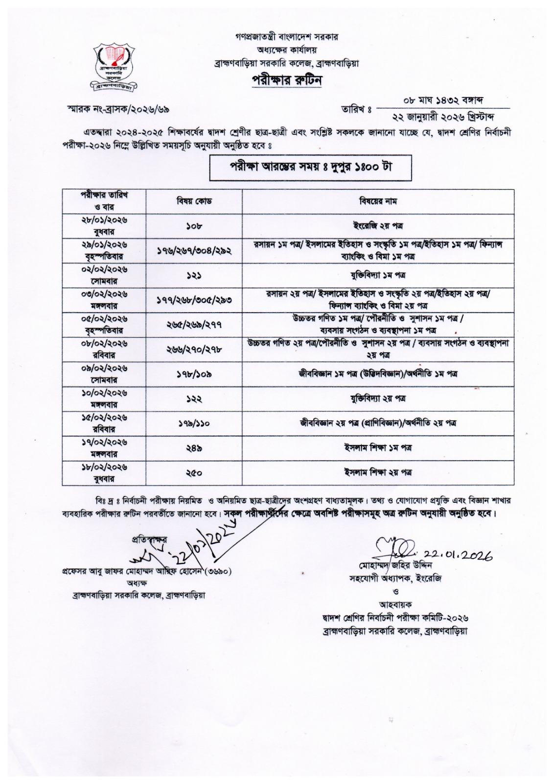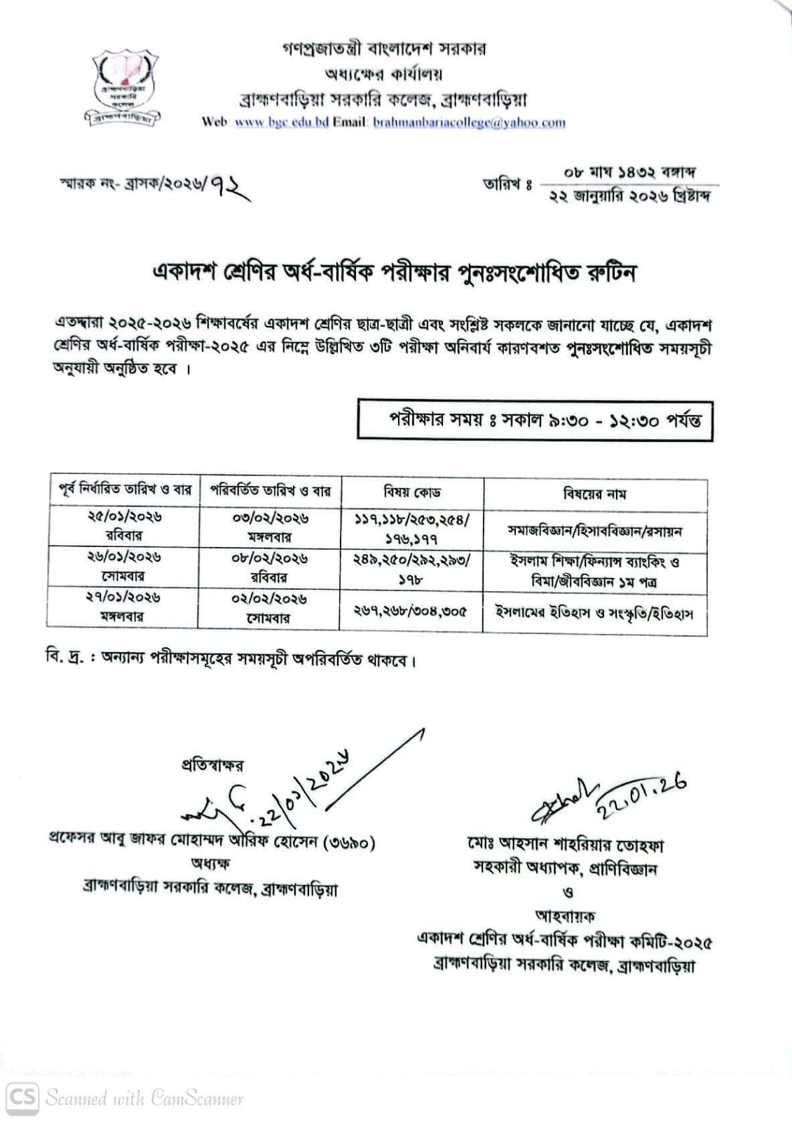 | একাদশ অর্ধবার্ষিক পরীক্ষা-২০২৫ এর পুনঃসংশোধিত রূটিন | ২২-০১-২০২৬ | ডাউনলোড |